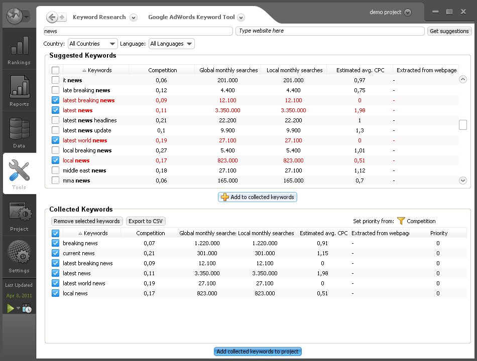 אחד מהכלים שאני משתמש בהם היא תוכנה לבדיקת המיקומים במנועי החיפוש השונים, שמה של התכנה הוא Advanced Web Ranking והיא מגיעה מחברת Caphyon הנפלאה.